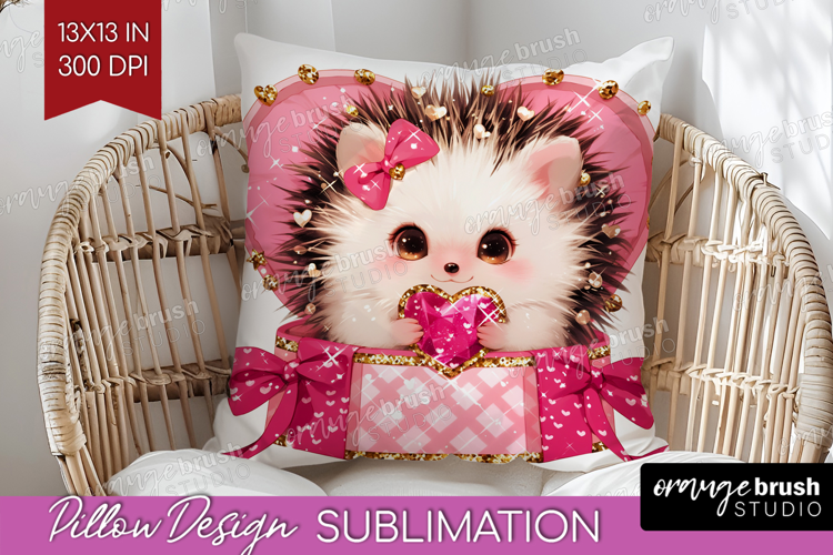 Hedgehog Valentine Pillow Sublimation Cute Valentines Day