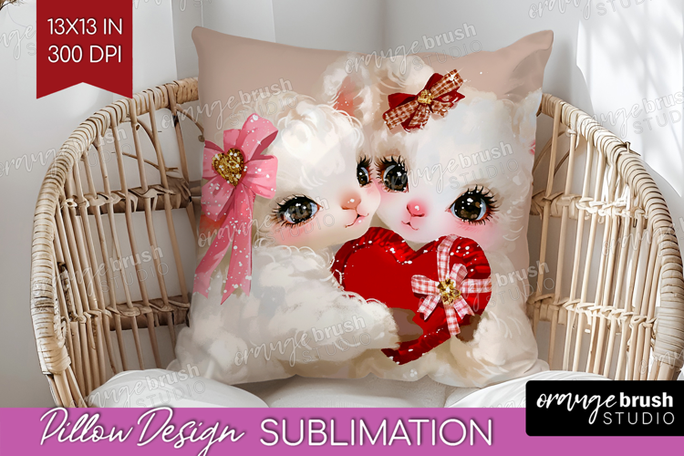 Lamb Valentine Pillow Sublimation Cute Valentines Day Pillow