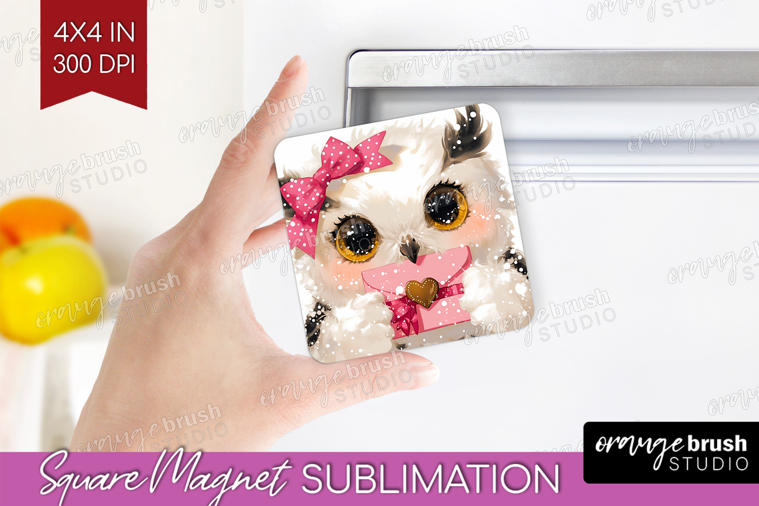 Owl Valentine Magnet Sublimation Cute Valentines Day Square example image 1
