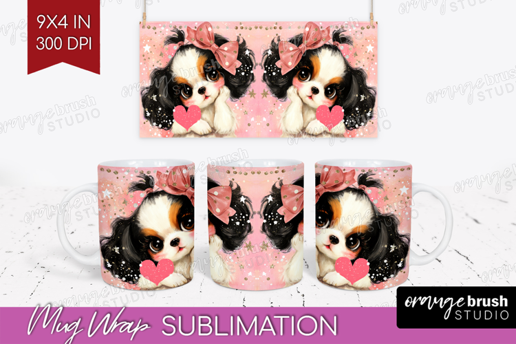 Puppy Valentine Mug Wrap Cute Valentines Day Mug PNG example image 1