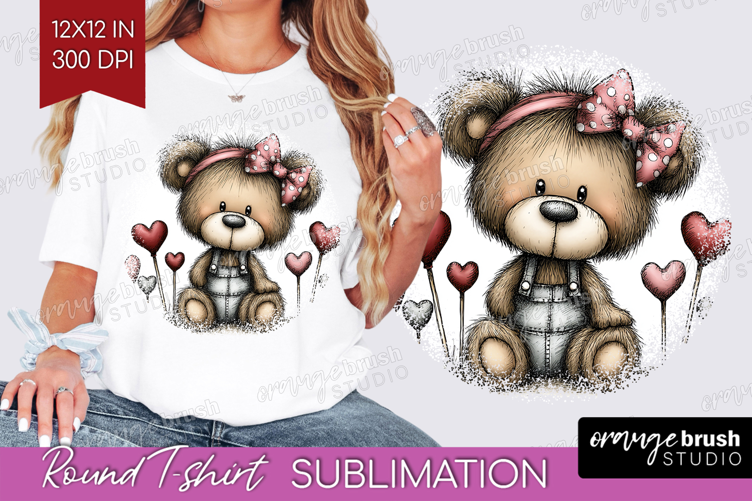 Bear Valentine Round Tshirt Background Whimsical Animal PNG example image 1