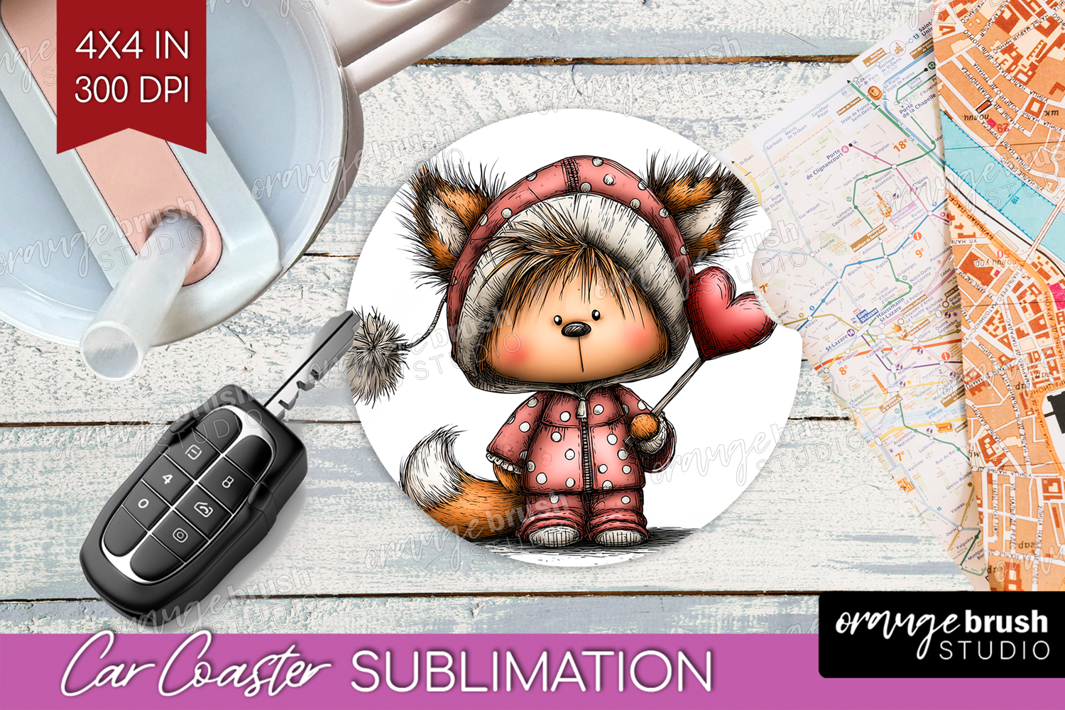 Baby Fox Valentine Car Coaster Whimsical Animal Coaster PNG