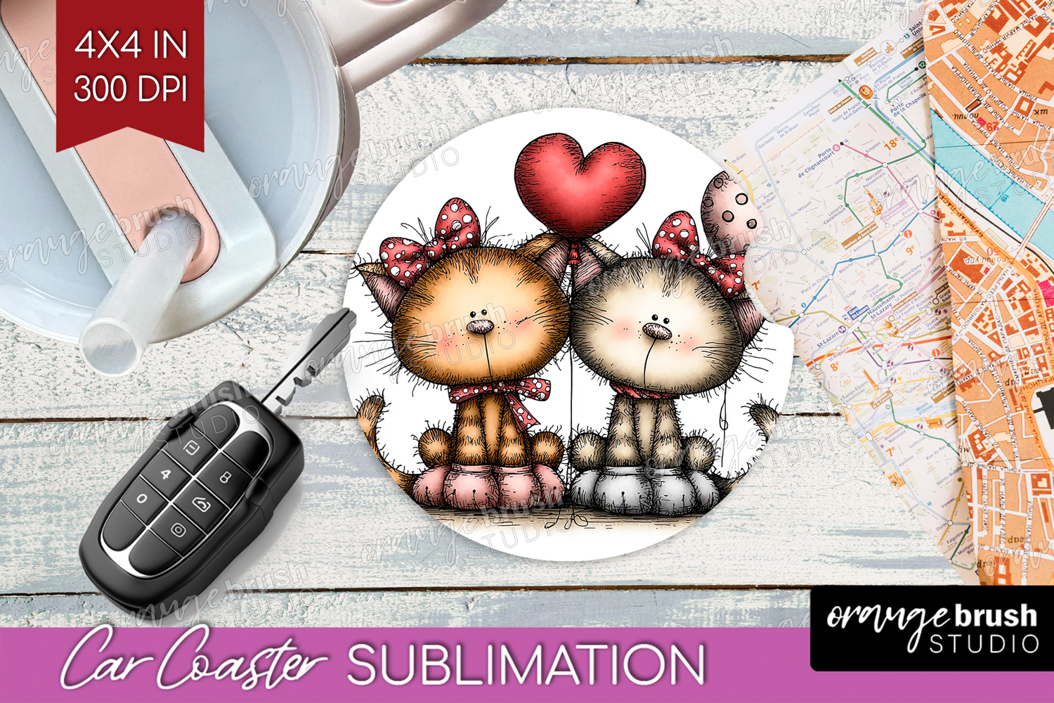 Cats Valentine Car Coaster Whimsical Animal Coaster PNG