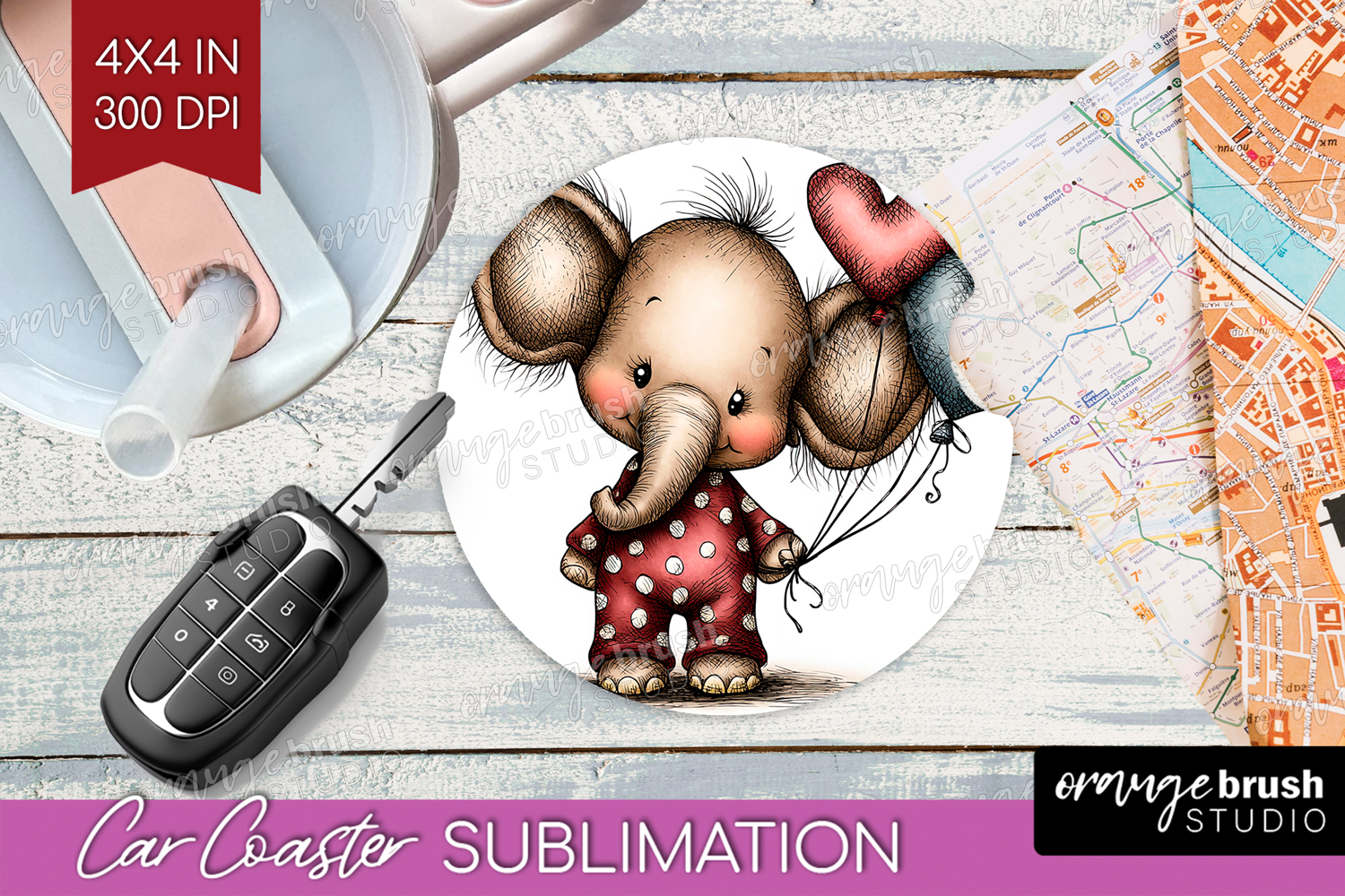 Elephant Valentine Car Coaster Whimsical Animal Coaster PNG