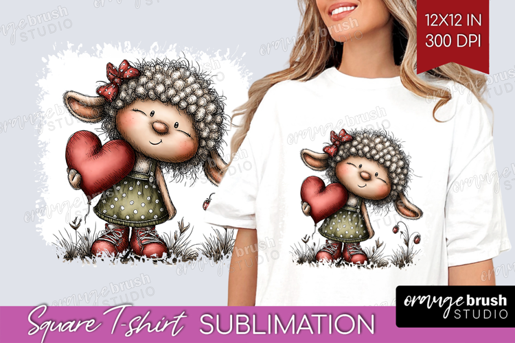 Lamb Valentine Square Tshirt Background Whimsical Animal PNG example image 1
