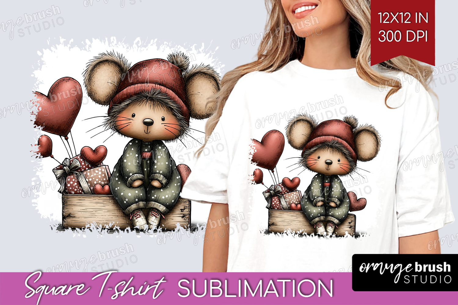Mouse Valentine Square Tshirt Background Whimsical Animal example image 1