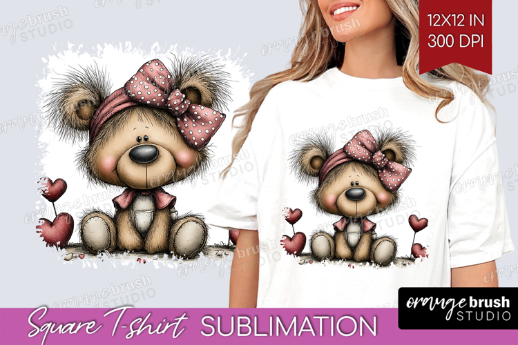Teddy Bear Valentine Square Tshirt Background Whimsical PNG example image 1