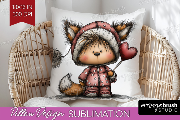 Baby Fox Valentine Pillow Sublimation Whimsical Animal Cover