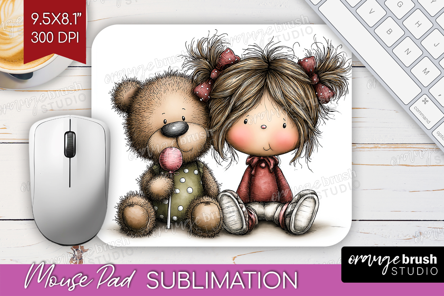 Girl and Bear Valentine Mouse Pad Sublimation Whimsical