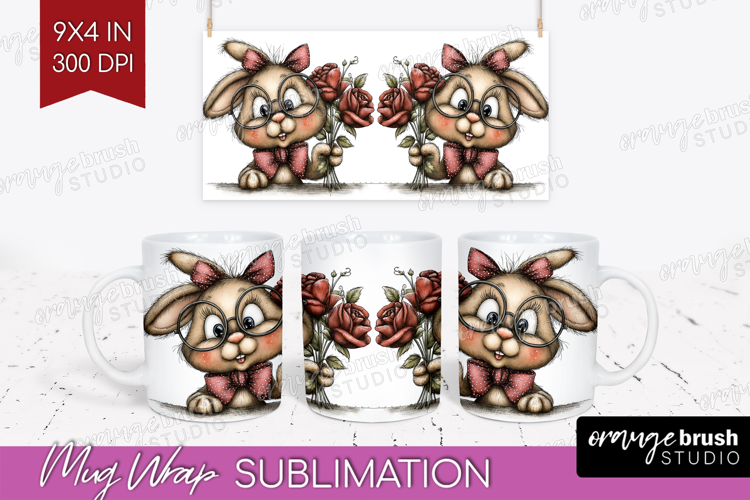 Bunny Valentine Mug Wrap Whimsical Animal Mug PNG example image 1