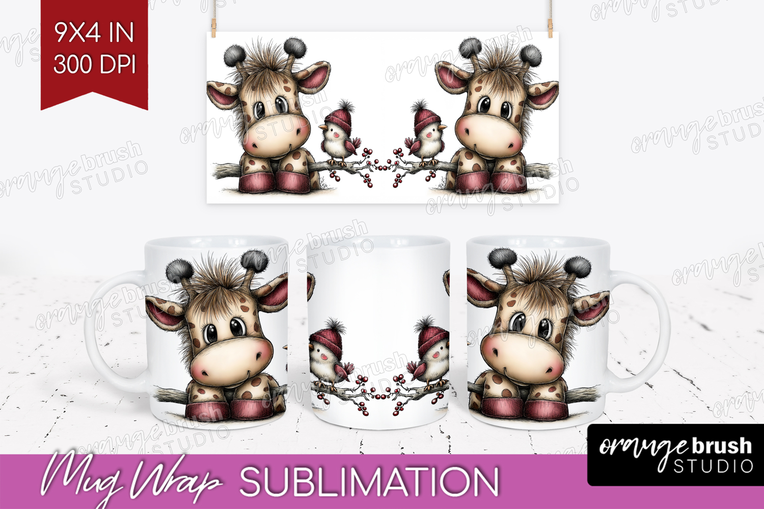 Giraffe Valentine Mug Wrap Whimsical Animal Mug PNG example image 1