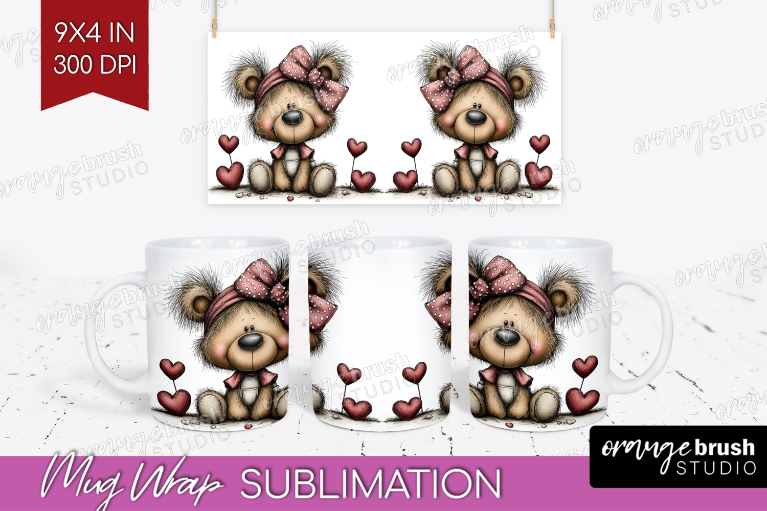 Teddy Bear Valentine Mug Wrap Whimsical Animal Mug PNG example image 1