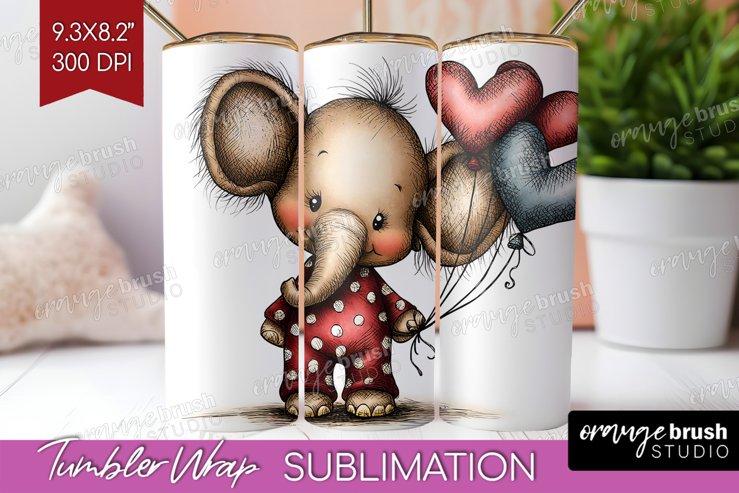 Elephant Valentine Tumbler Wrap Whimsical Animal Tumbler PNG example image 1