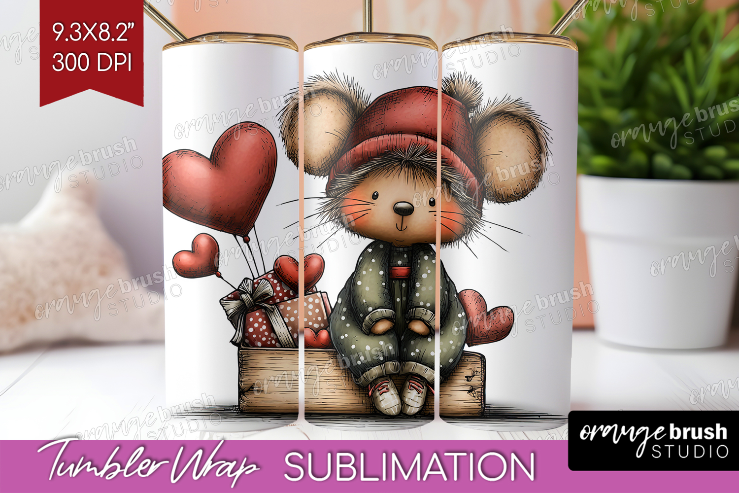 Mouse Valentine Tumbler Wrap Whimsical Animal Tumbler PNG