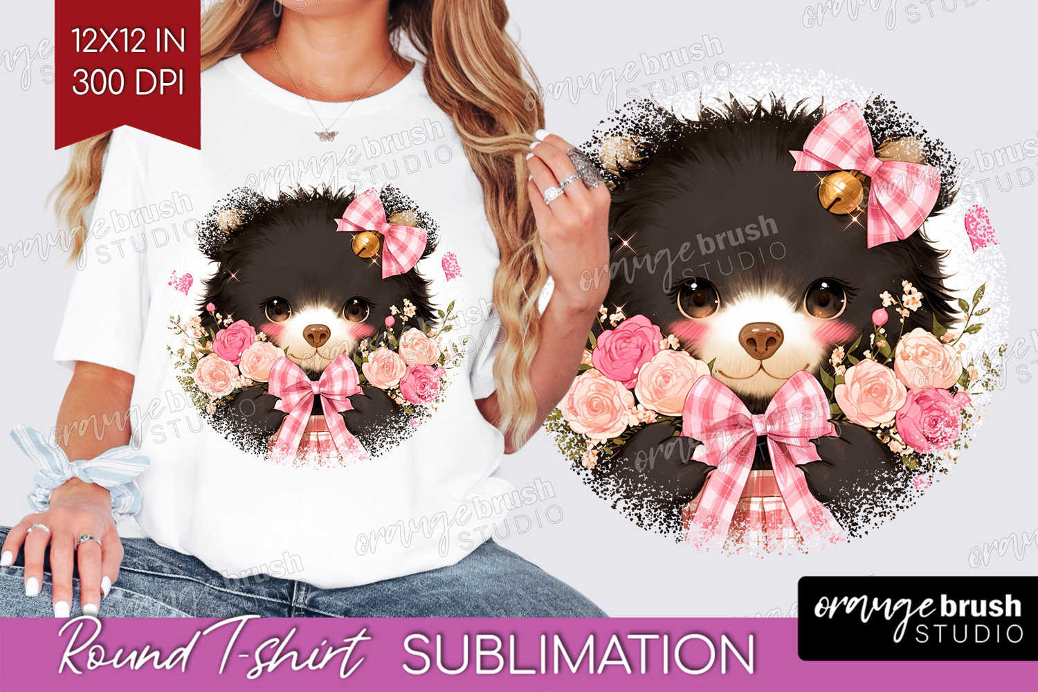 Black Bear Valentine Round Tshirt Background Cute Valentines example image 1