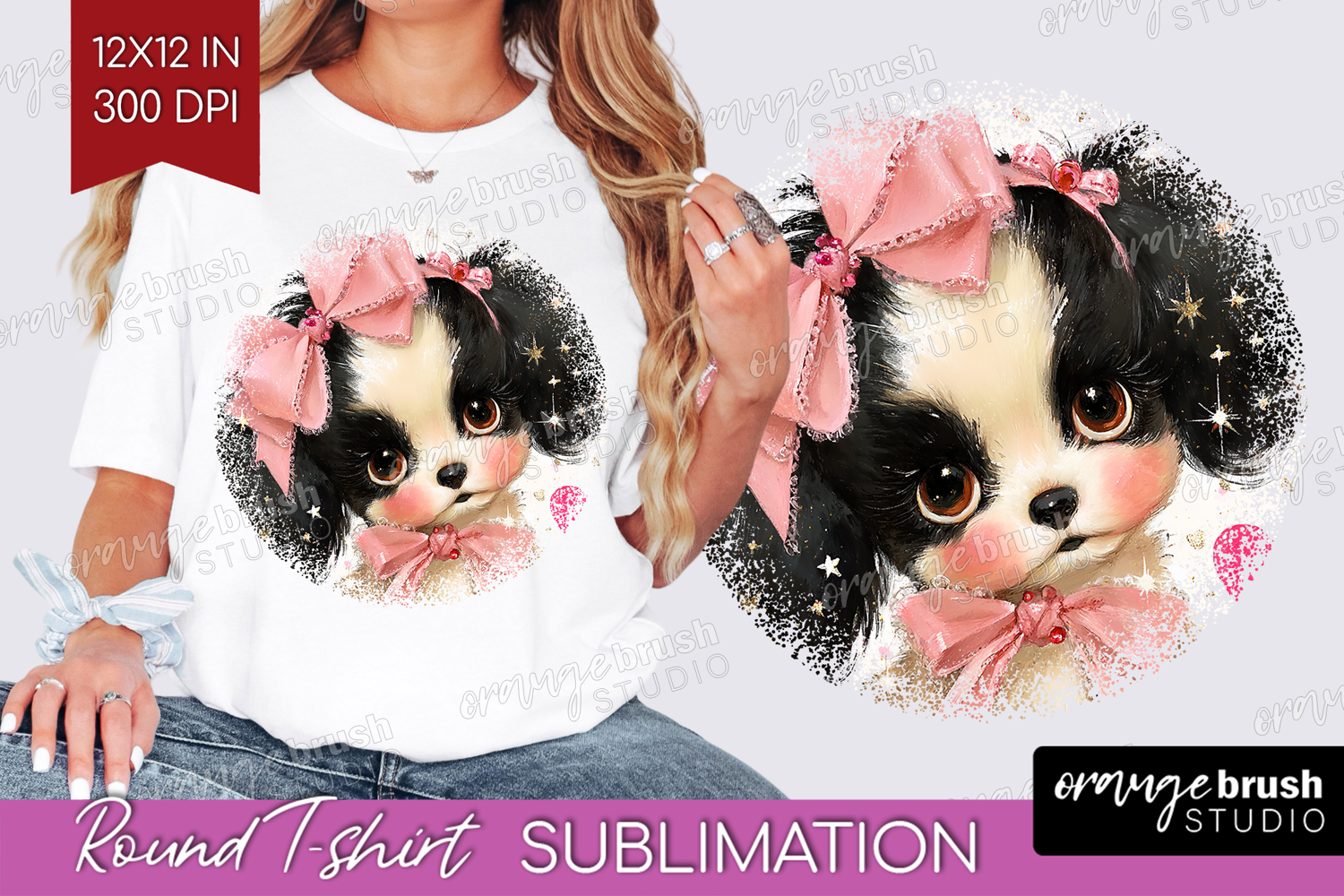 Puppy Valentine Round Tshirt Background Cute Valentines Day example image 1