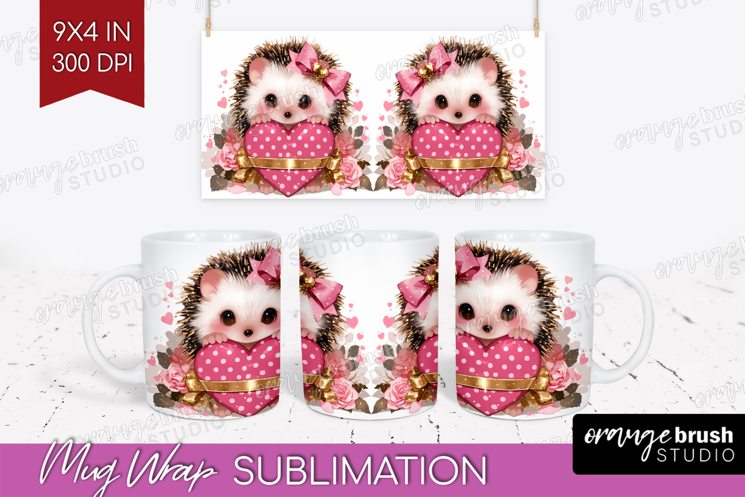 Hedgehog Valentine Mug Wrap Cute Valentines Day Mug PNG example image 1