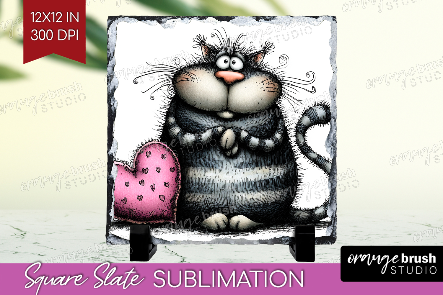 Whimsical Cat Slate PNG - Valentines Day Square Slate example image 1