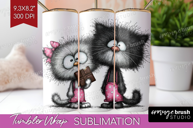 Whimsical Cat Tumbler Wrap - Valentines Day Tumbler PNG example image 1