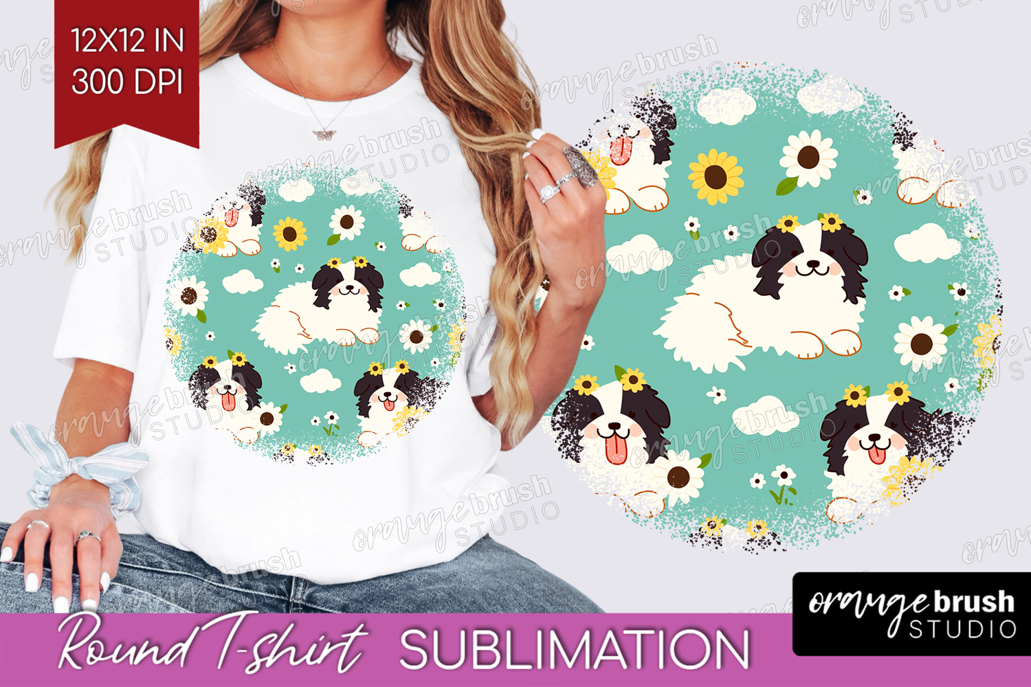Cute Dog Round Tshirt Background - Chibi Puppy PNG example image 1