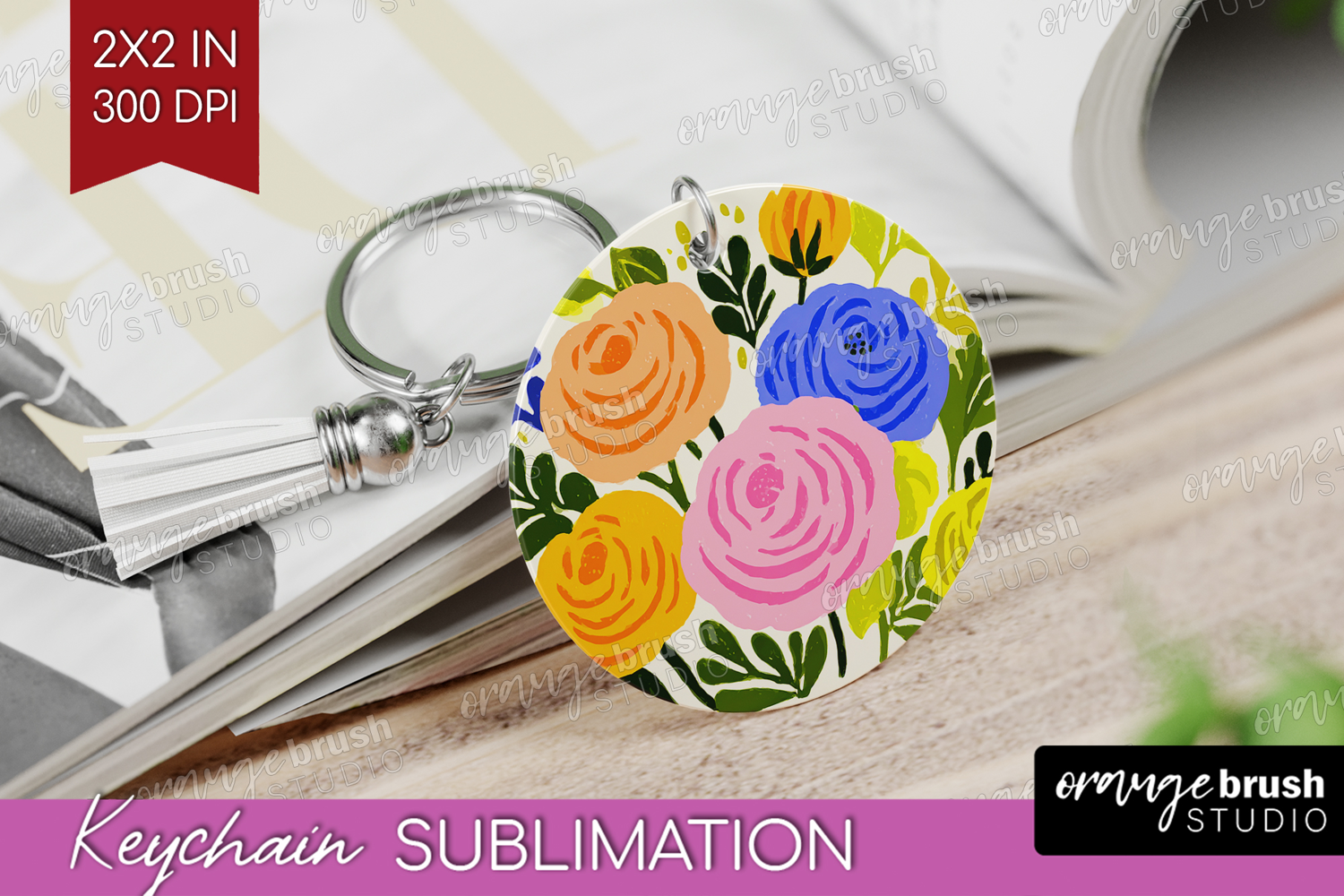 Ranunculus Modern Floral Keychain PNG Sping Flower Keychain example image 1