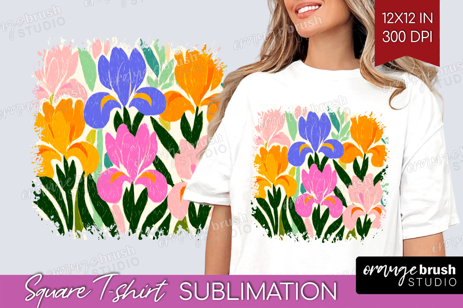Iris Modern Floral Square Tshirt Background Sping Flower PNG example image 1
