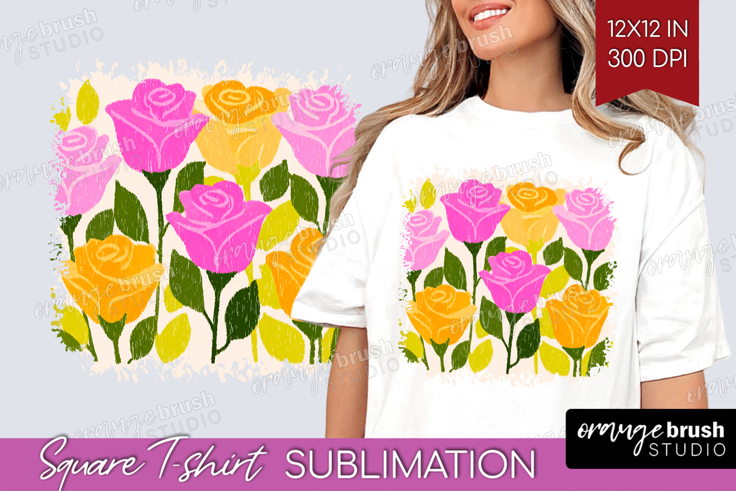 Rose Modern Floral Square Tshirt Background Sping Flower PNG example image 1
