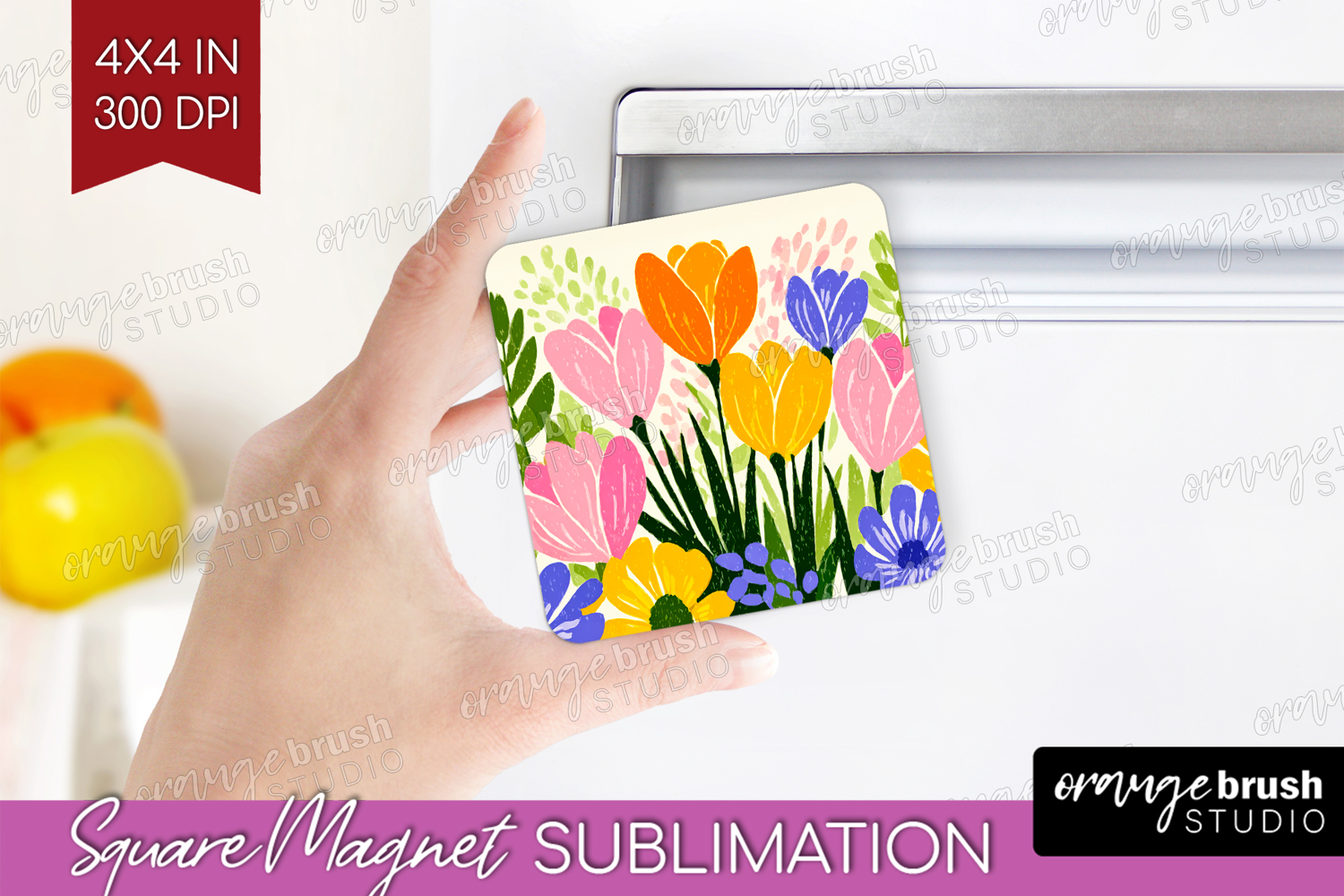 Crocus Modern Floral Magnet Sublimation Sping Flower Square example image 1