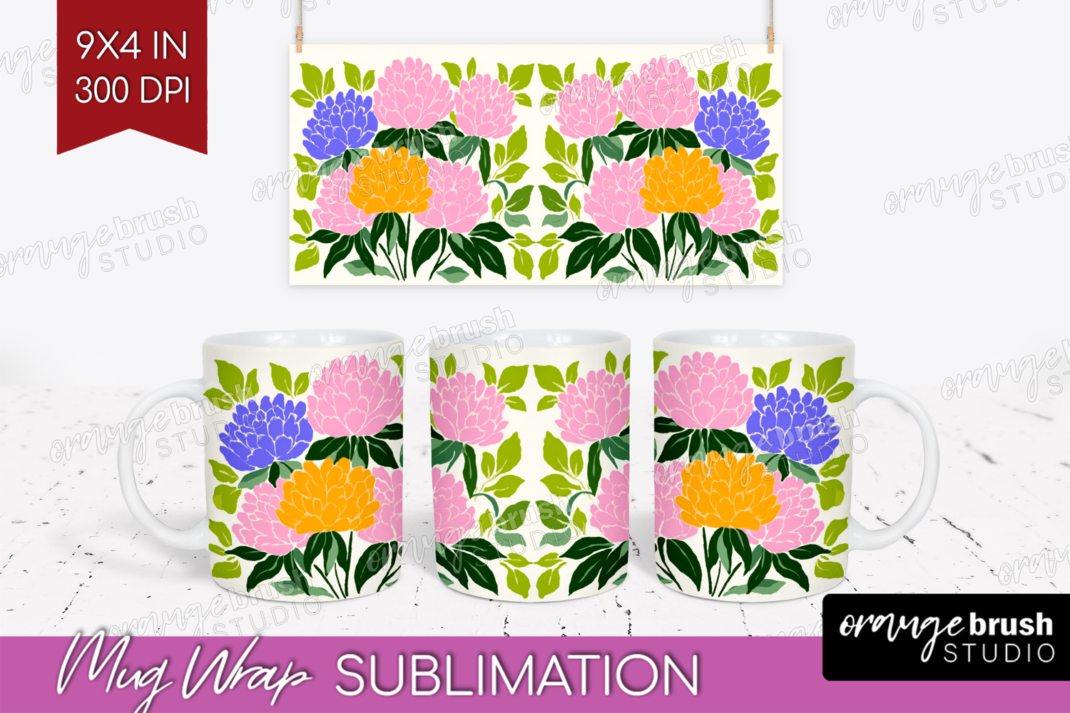 Peony Modern Floral Mug Wrap Sping Flower Mug PNG example image 1