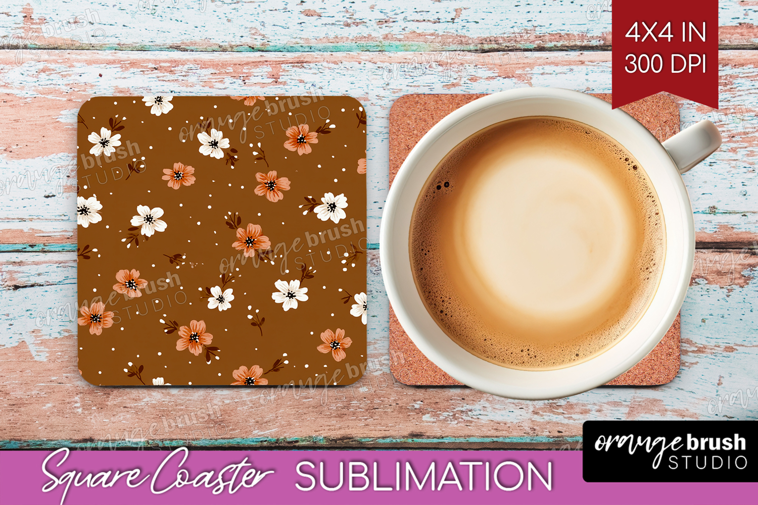 Tiny Flowers Square Coaster - Floral Coaster PNG Sublimation