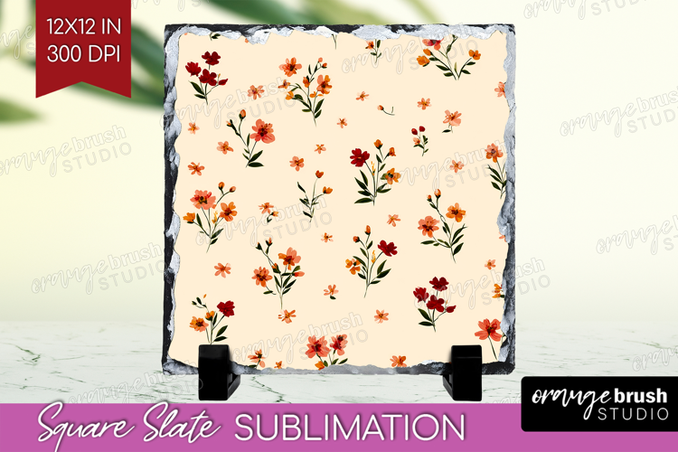Tiny Flowers Slate PNG - Floral Square Slate Sublimation