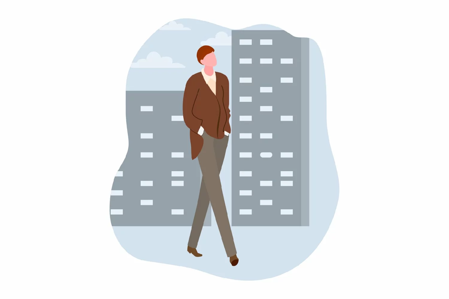 Flat Vector Man City Career Building View Back Employment Resource
