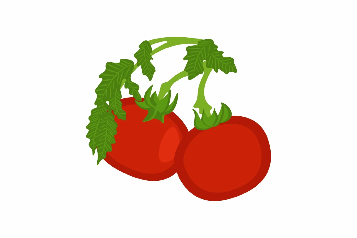 vector of a bunch of red fresh tomatoes on a green branch.