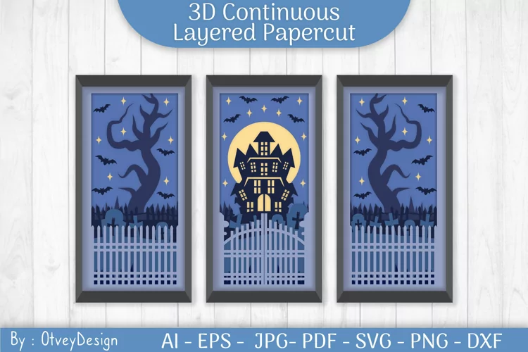 Halloween Scene 3D Continuous Layered Papercut | SVG