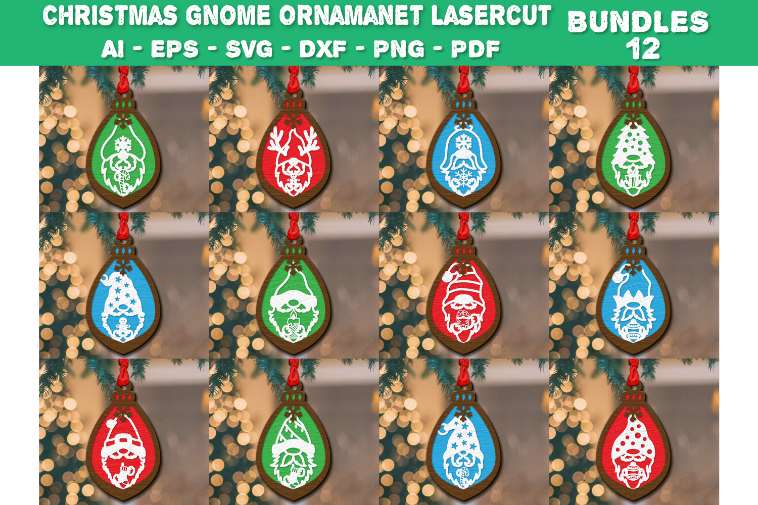 Christmas Gnome Ornament Laser Cut BUNDLES 12 DESIGNS