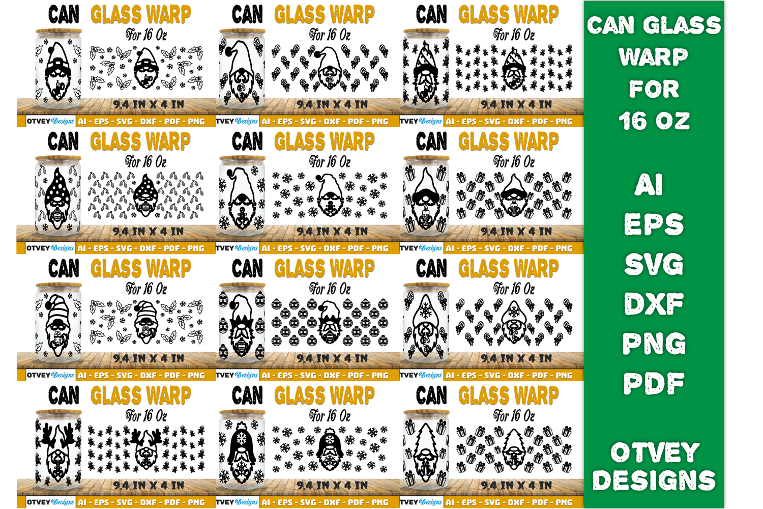 Christmas Gnome 16 oz Can Glass Wrap SVG BUNDLES 12 DESIGNS