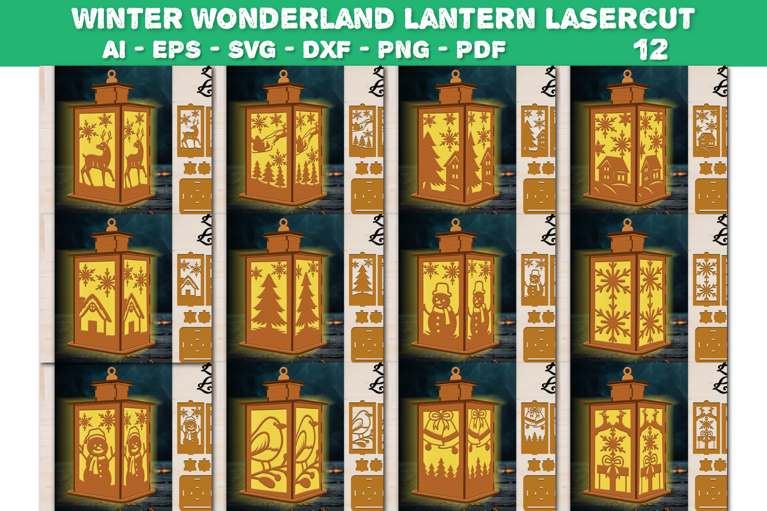 Winter Wonderland Lantern Lasercut File BUNDLES 12 DESIGNS