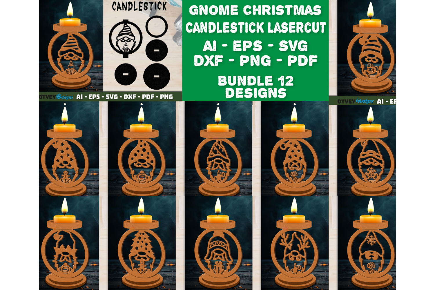 Gnome Christmas Candlestick Lasercut BUNDLES 12 DESIGNS example image 1