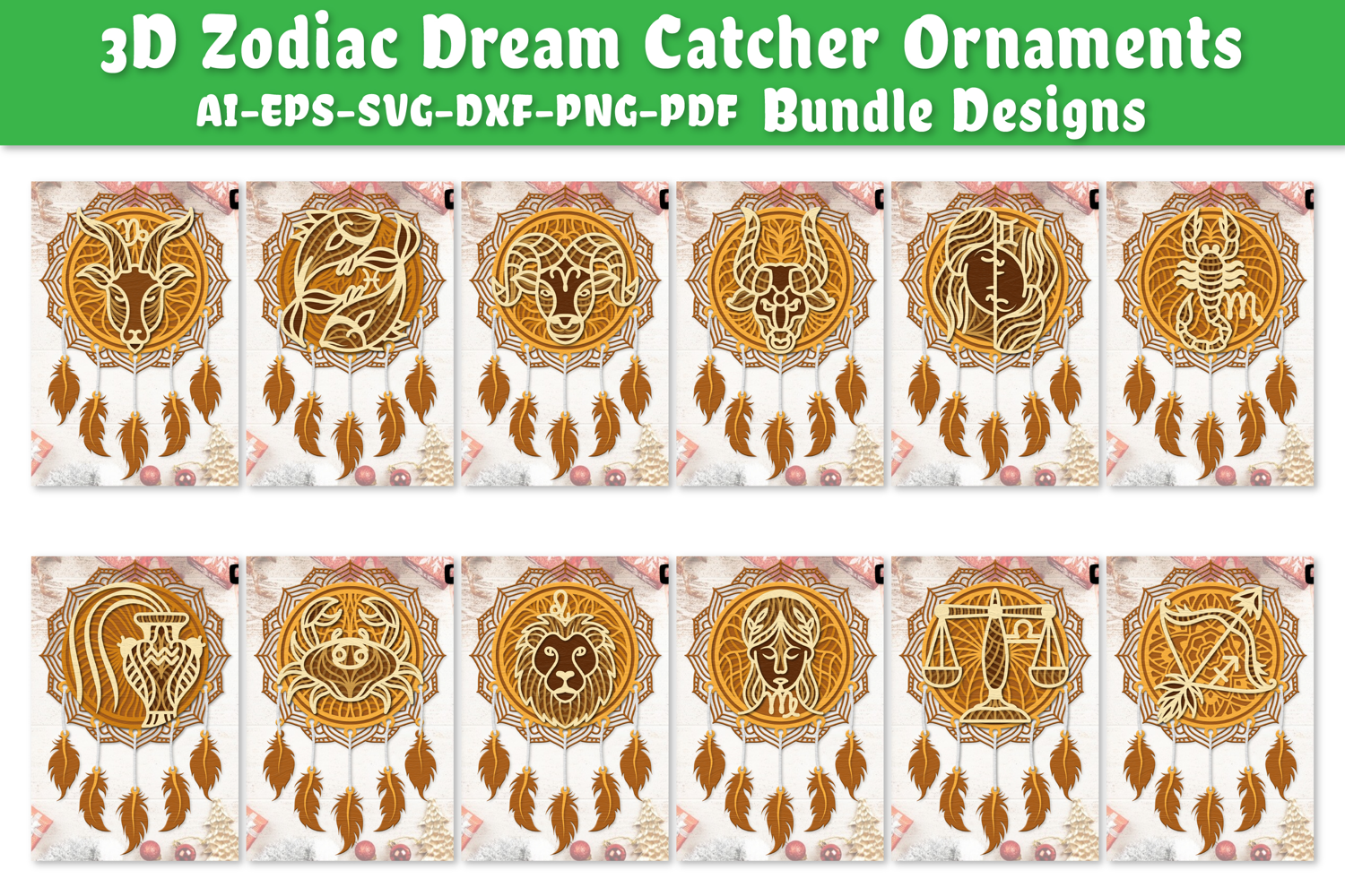 Similar Design Products to 3D Zodiac Dream Catcher Ornaments Lasercut BUNDLES