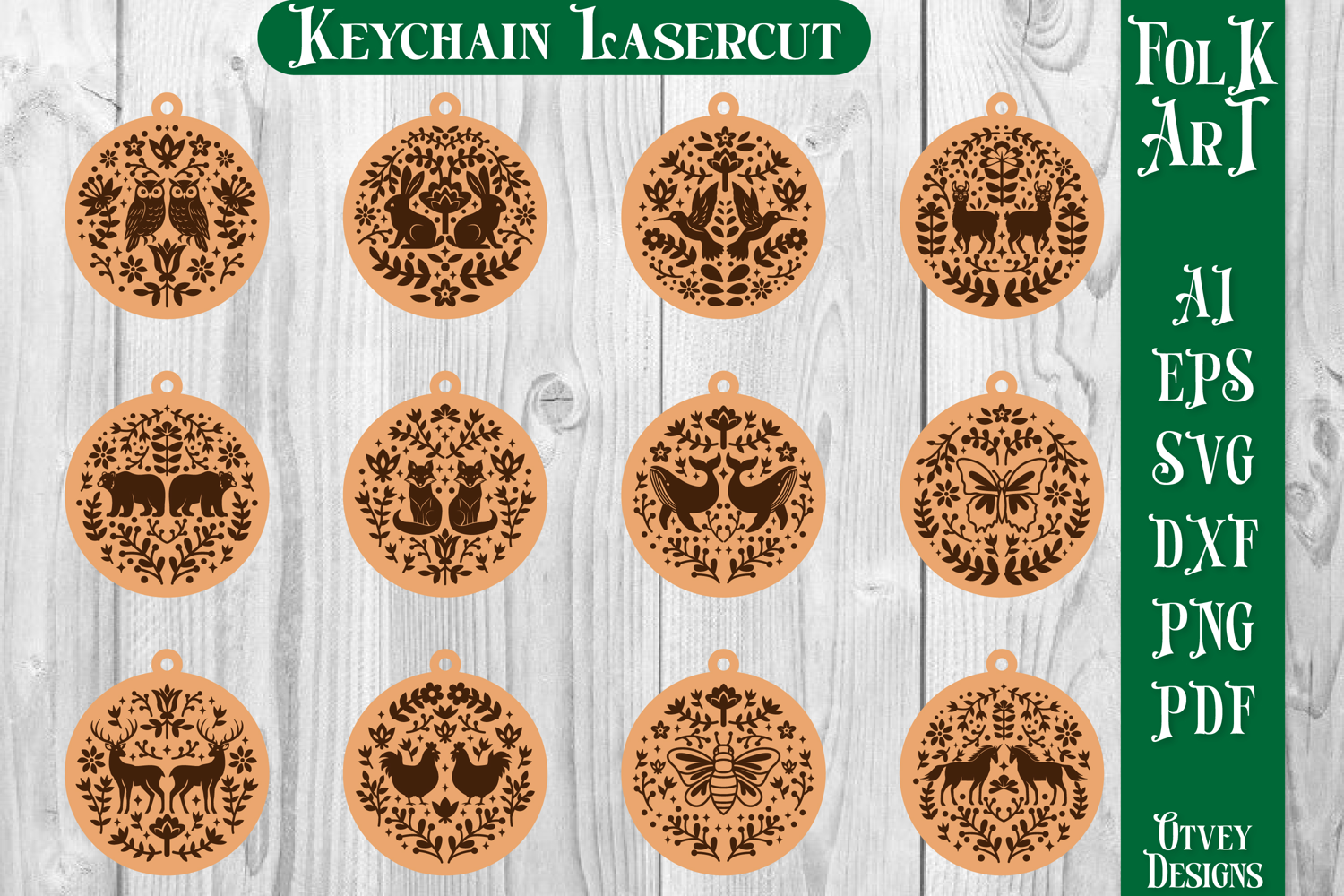 Folk Art Keychain Lasercut BUNDLES 12 DESIGNS