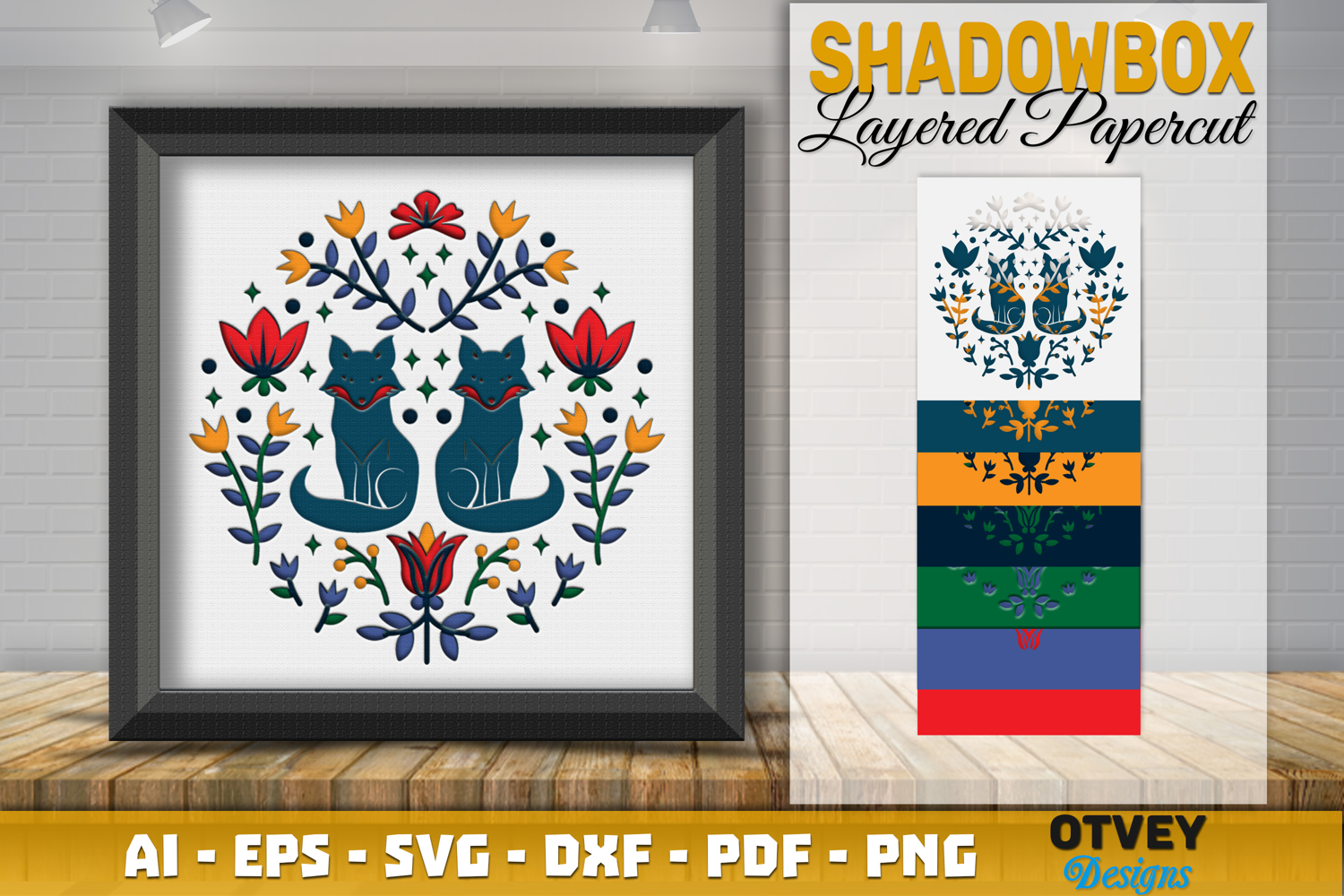 Similar Design Products to Fox Folk Art Scandinavian 3D Shadow Box Layered Papercut
