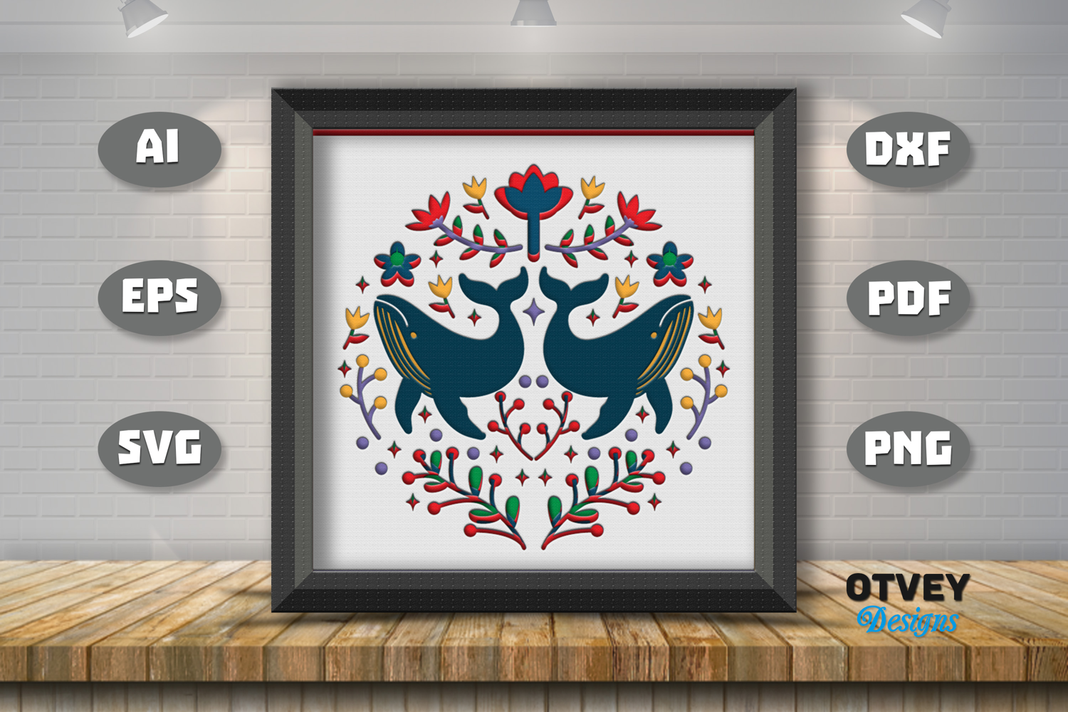 Whale Folk Art Scandinavian 3D Shadow Box Layered Papercut example image 1