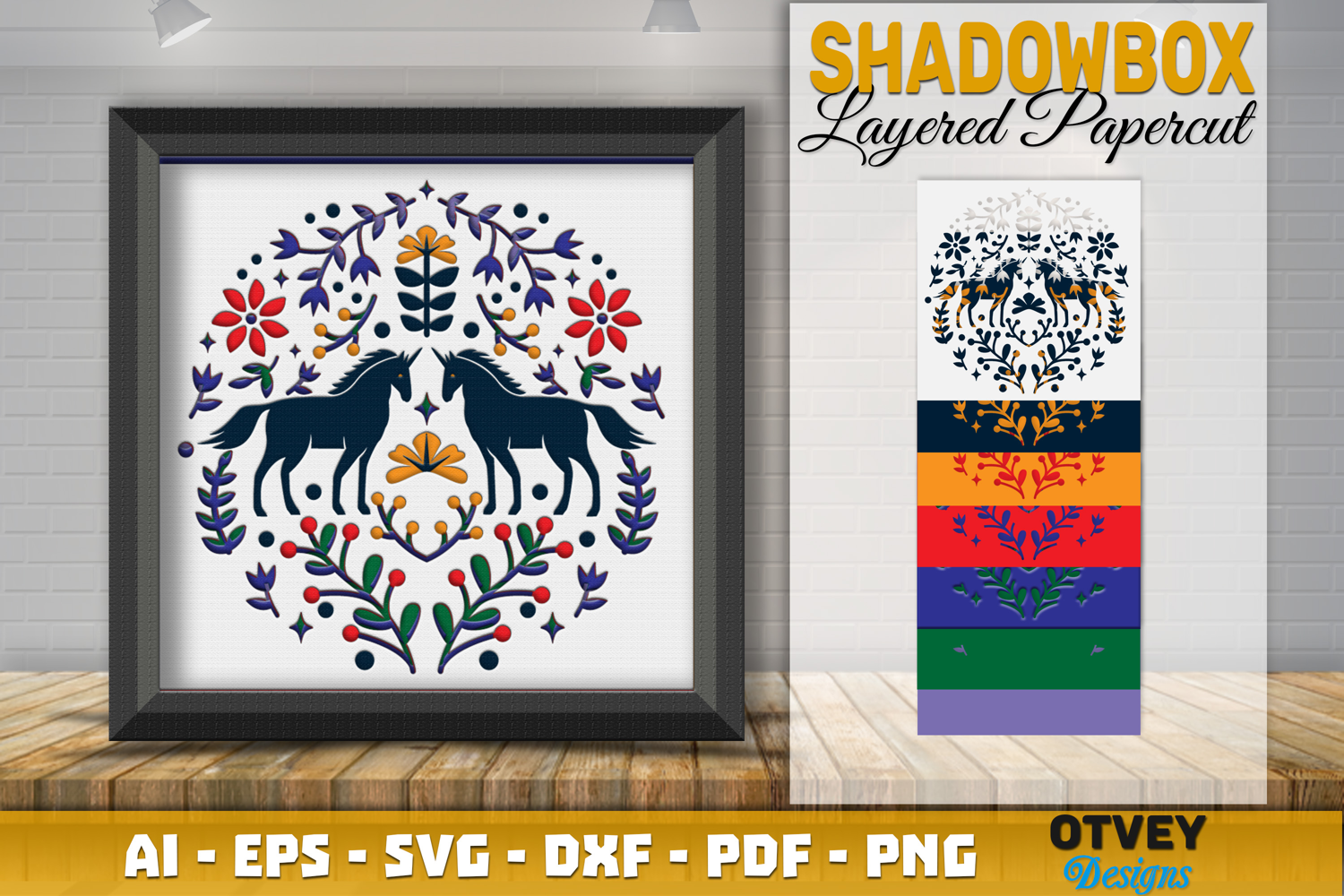 Horse Folk Art Scandinavian 3D Shadow Box Layered Paperc example image 1