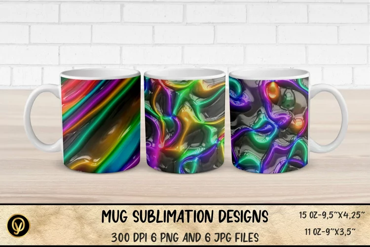 Mug Sublimation Designs , Abstract Sublimation Mug Templates,Abstract Gradient Mug Sublimation Wrap.Holographic Mug Template, Abstract 3D Sublimation Mug
