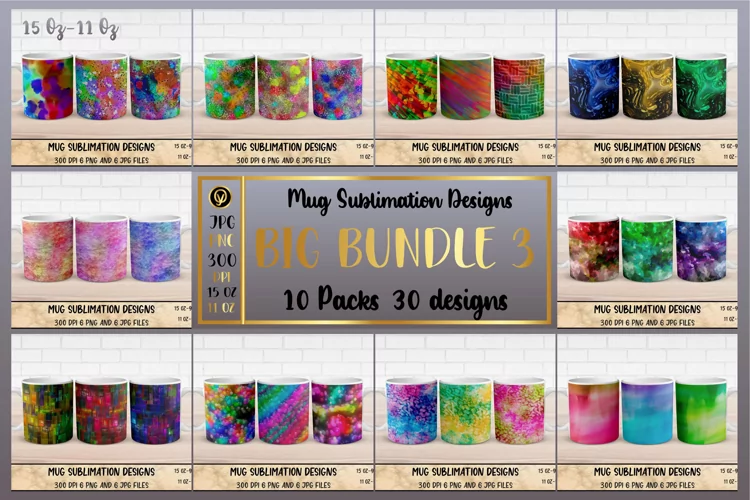 Mug Sublimation Wrap Big Bundle 3.Abstract Mugs.Includes 10 pack 30 different design.Abstract Fractal Sublimation Mug Templates,Abstract Gradient Mug Sublimation Wrap.Holographic Mug Template,Abstract Background Sublimation Mug