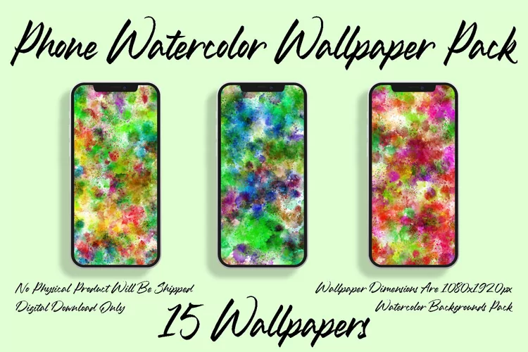 Phone Watercolor Wallpaper Pack.15 Phone Backgrounds Set