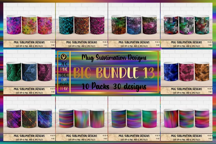 Mug Sublimation Wrap Big Bundle 13.Abstract Mugs.Includes 10 pack 30 different design.Abstract Fractal Sublimation Mug Templates,Abstract Gradient Mug Sublimation Wrap.Holographic Mug Template,Abstract Background Sublimation Mug