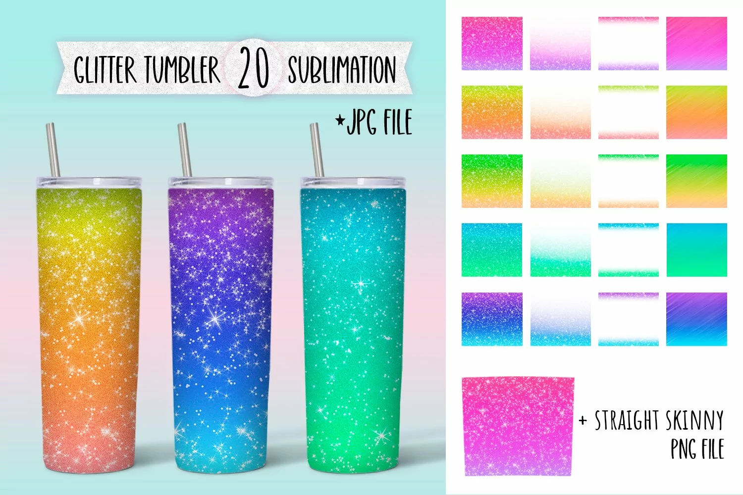 Glitter Tumbler Colored Design | Sublimation Wrap Bundle example image 1