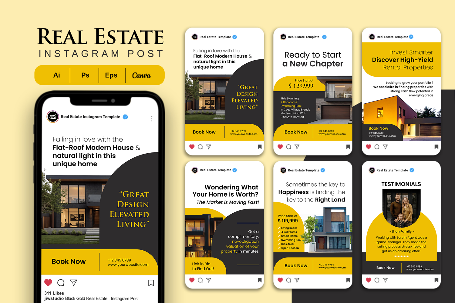 Enhance your Instagram Branding to the next level with our customizable Post templates. Designed to drive audience growth and engagement your branding, these templates offer ready-made designs for focus on Real Estate Content. Easily adapt the colors, text, and images to fit your brand and start posting today.