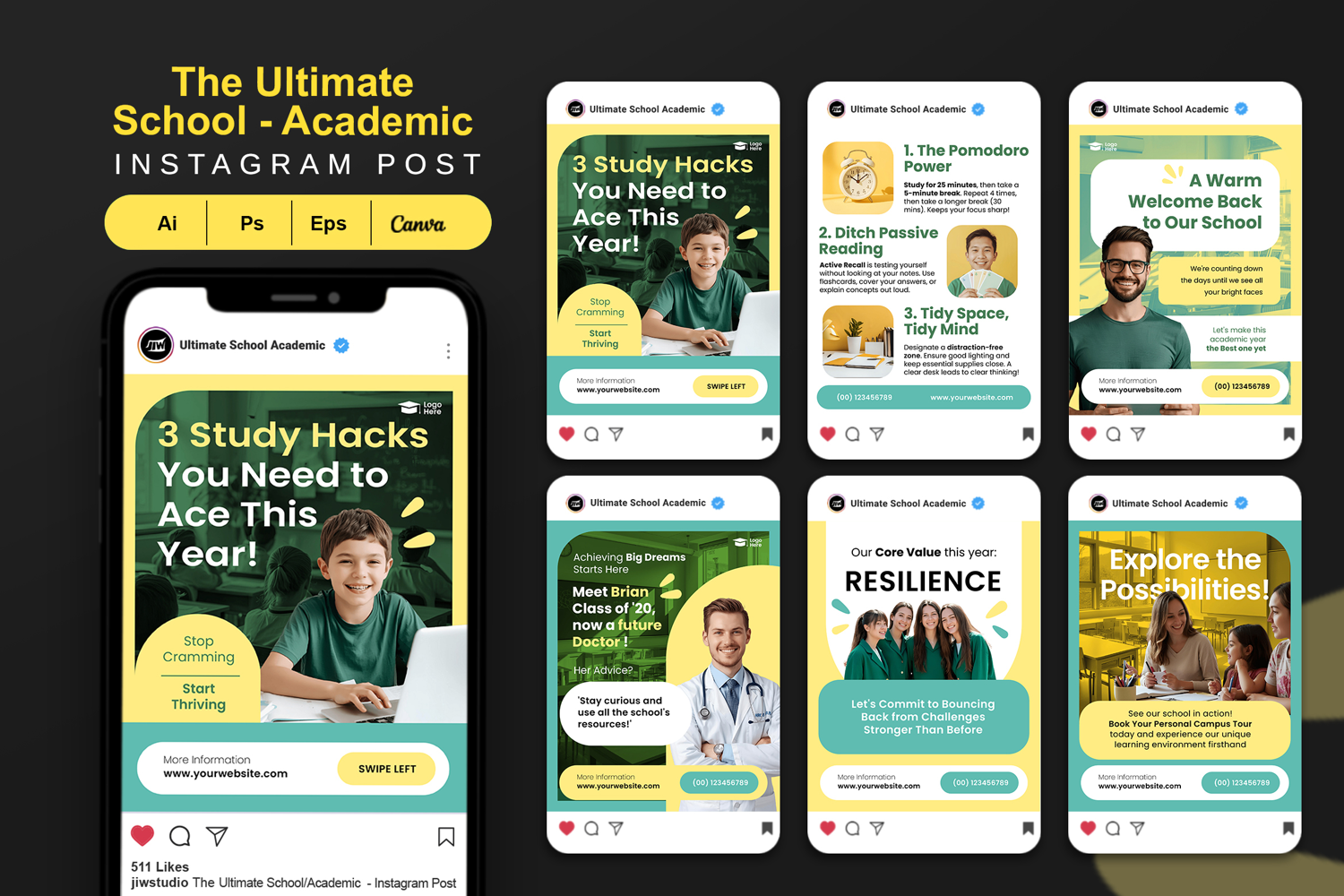 **This Ultimate School - Academic Instagram Post Template** pack is your secret weapon!